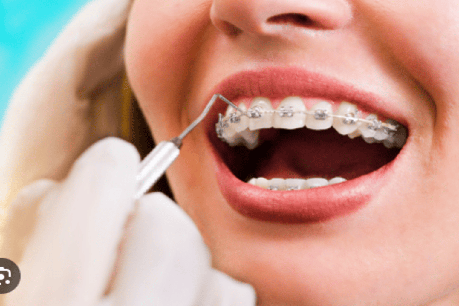 Metal or ceramic brackets to straighten teeth.